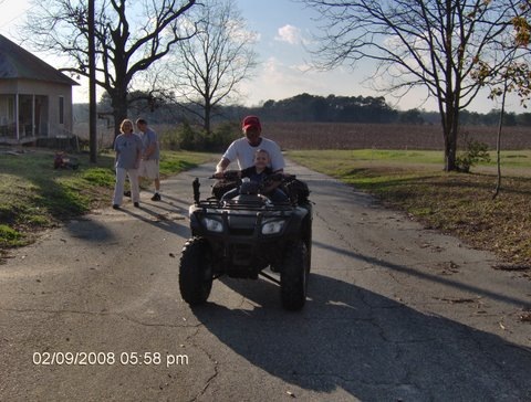 Well Saturday we headed out the Pavo to visit Grandma and Grandpa Mainprize. Ethan had a blast and learned a new thing about visiting them, Their 4 wheelers! Ethan loved it and kept wanting to go back out for more!