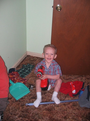 Here is Danny working on taking apart the last bit of baby we had for Ethan since he has outgrown everything else. *sniff*