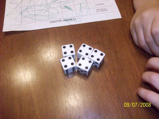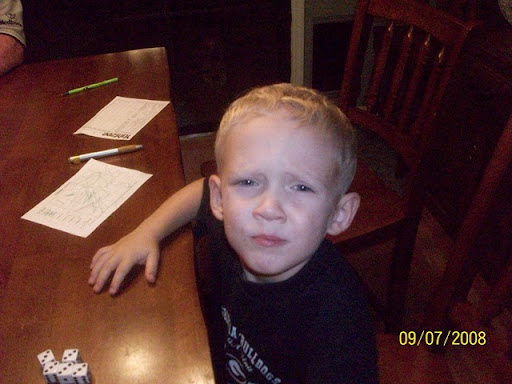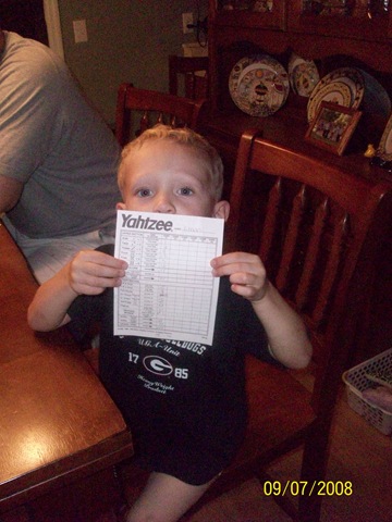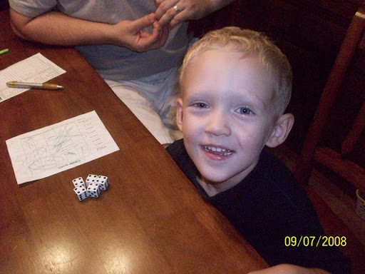 Ohh the other day, I got THREE yatzees....Ethan and I should team up in Vegas!!