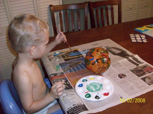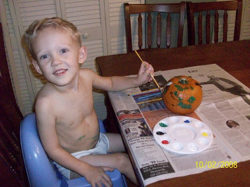 I LOVE the pictures of ethan painting his pumpkin. What cute parents you are:)