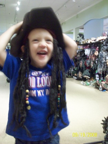 Well we were out and about paying bills one afternoon and noticed the Halloween store was in town. So we had to check it out. Ethan only let me take these two pictures (he's reaching the point that he'll tell me not to take his picture and if I keep trying he'll take of crying...so I go with what I get now. :) )